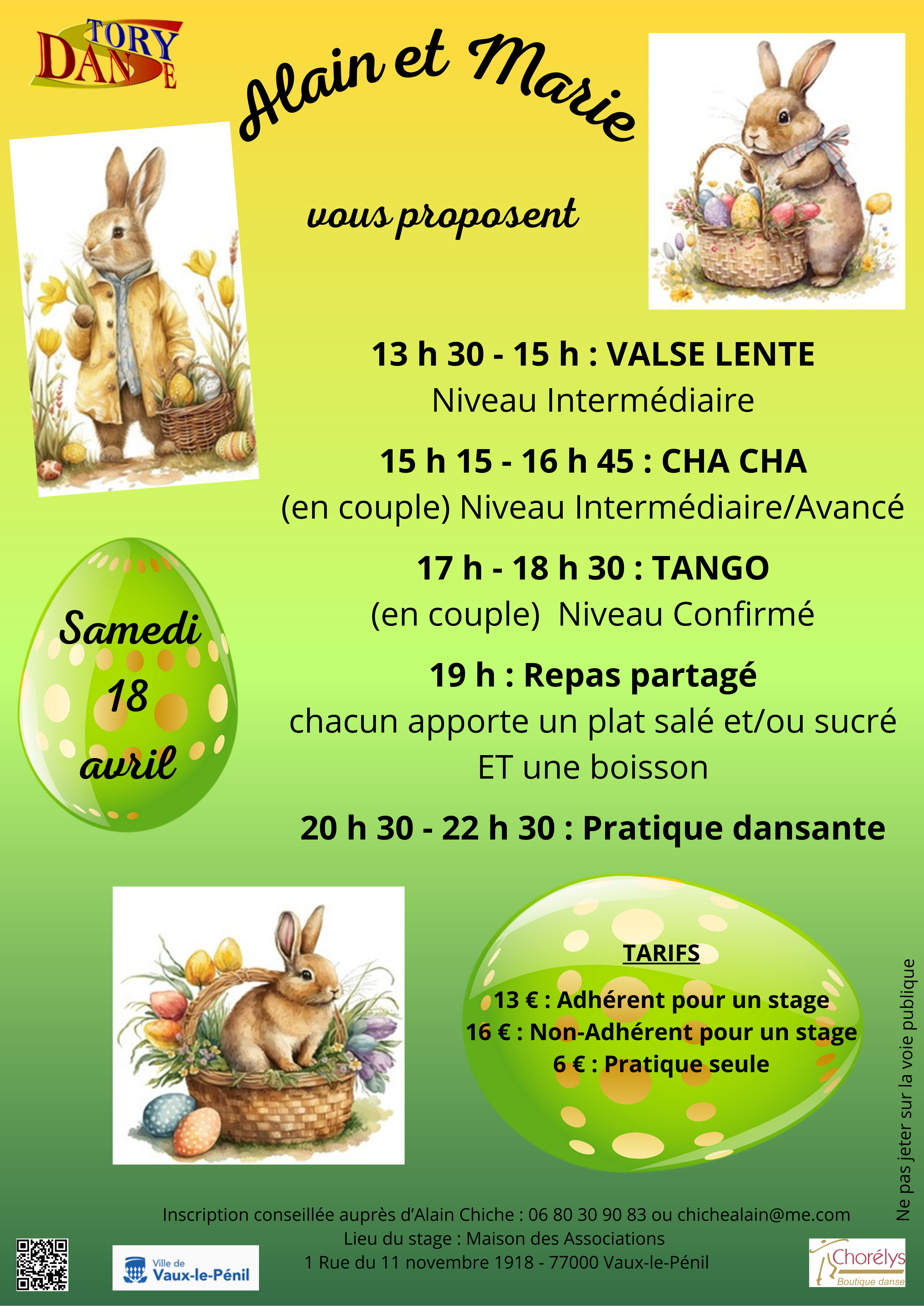 Ces stages seront suivis d'un repas partagé, et d'une soirée d'entraînement toutes danses.
